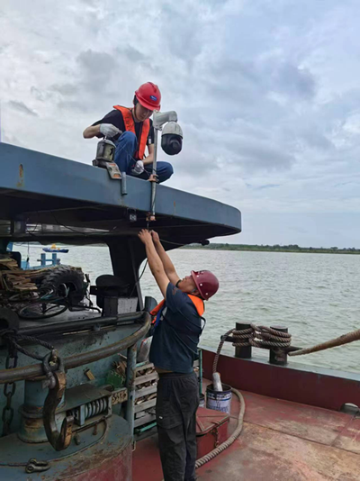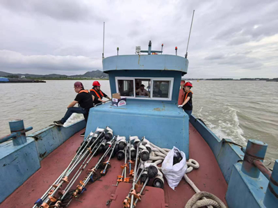 面對(duì)高溫“烤”驗(yàn),躉船鋼板表面溫度直逼70℃,工作人員作業(yè)在船板上,猶如“鐵板燒”。然而,江海物流事業(yè)部江蘇區(qū)域的一線工作人員仍全副武裝——他們身著長(zhǎng)袖上衣、長(zhǎng)褲,頭戴安全帽,身系救生衣,在悶熱如蒸籠的船艙、甲板間來回穿梭。汗水反復(fù)浸透衣服又蒸發(fā)晾干,后背上凝結(jié)的鹽漬清晰可見,卻無一人退離作業(yè)一線。